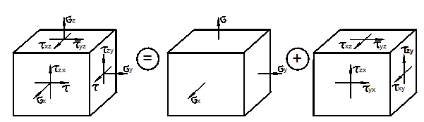 Напряженное состояние в точке можно представить как сумму состояний: