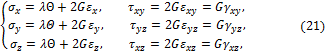 - Напишите формулы обобщенного закона Гука?