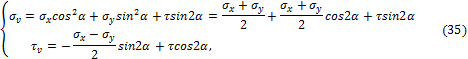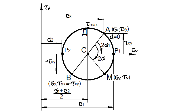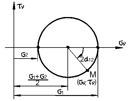 - Как производится графическое построение для определения напряжений в наклонных площадках в случае плоского напряженного состояния?
