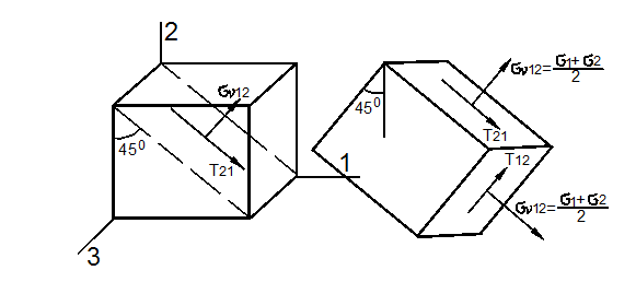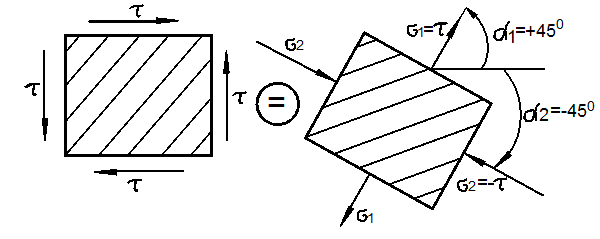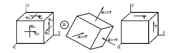 - Как связаны главные напряжения и максимальные касательные напряжения при чистом сдвиге?