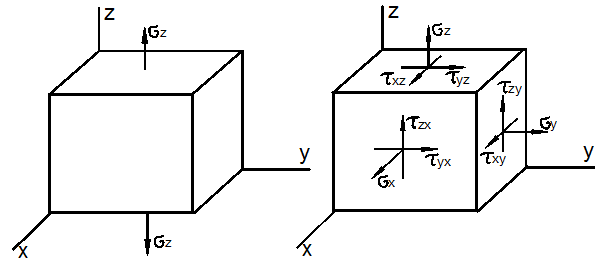 знать значения нормальных и касательных напряжений на трех взаимно