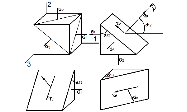 и направления в общем случае объёмного напряжённого состояния
