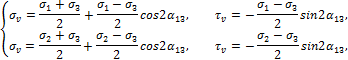 - Напишите формулы для определения главных напряжений и углов наклона главных площадок.