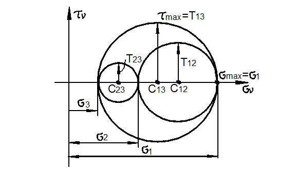 - Чему равны максимальные значения касательных напряжений в случае плоского напряженного состояния?