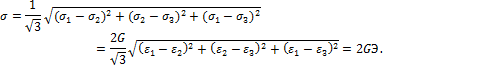 - Сформулируйте обобщенный закон Гука через интенсивность напряжений и деформаций.