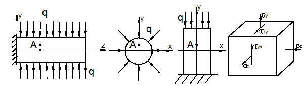 - Какие существуют типы напряженного состояния в точке тела, чем они отличаются?
