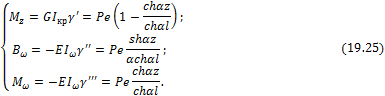 Пусть задан тонкостенный стержень (рис. 19.18, а) при действии самоуравновешивающих крутящих моментов на двух противоположных концах.
