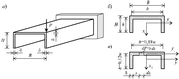 Следовательно, характерные размеры тонкостенных стержней открытого профиля взаимосвязаны и меняются в пределах l/s≥10 и s>>δ.
