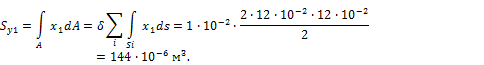 Определяется секториальная площадь относительно центра изгиба по формуле (19.3) и вычисляется секториaльно стaтический момент поперечного сечения по формуле: