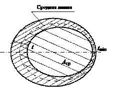Наиболее целесообразными при кручении являются тонкостенные стержни замкнутого профиля. Геометрическое место точек, равноотстоящих от внешнего и внутреннего контуров поперечного сечения, называется средней линией сечения (рис.19.14).