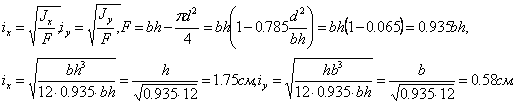 а затем и радиус инерции поперечного сечения: