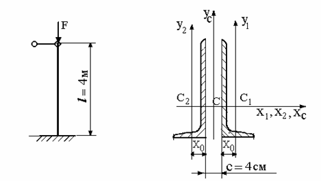 величину критической силы, критического напряжения для стойки длиной l = 4 м, один конец которой жестко защемлен, а другой шарнирно оперт.