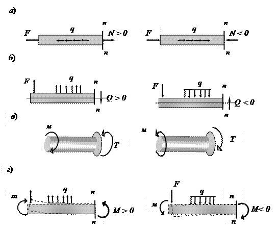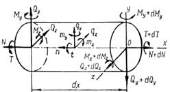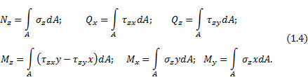 равновесия для внутренних усилий в поперечных сечениях стержней